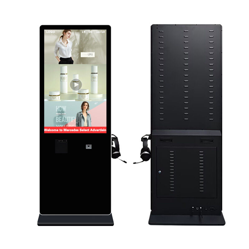 This 43-inch nano-film touch floor-standing kiosk with headphones is widely used in shopping malls, cinemas, exhibition halls, airports, railway stations, corporate lobbies, educational institutions and entertainment venues. It is suitable for functions such as information inquiry, ticket booking, product display, interactive gaming and audio-visual experience. The headphone configuration provides users with a private and immersive experience, while the nano-film touch screen ensures stable and durable use in high-traffic public environments.
